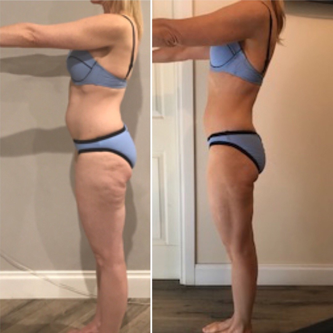 4 week transformation! Yes you heard it..4 weeks! This client has stuck to the customized training and nutrition, dropped substantial body fat, tightened and toned but most importantly, regaied that lost confidence and mojo. Sometimes things in our life derail us and we lose our focus. Its important to recognize that, reach out and find help. Congrats girl!