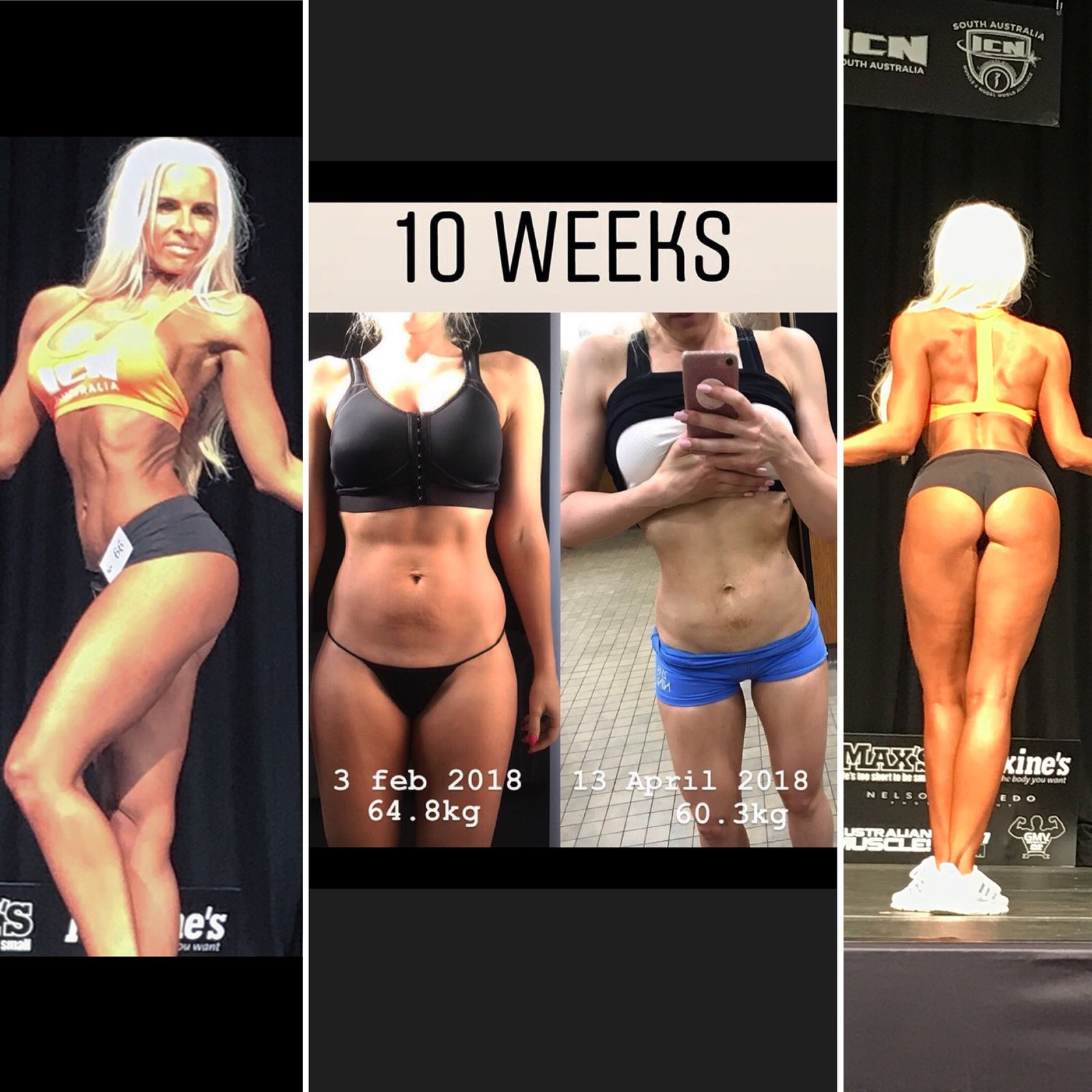 Coming to me only a short time before her competition date, this busy mum does a lot of international travel and works so hard. We managed to drop over 4.5 kg in 2 months and customise her training so she trained smarter. Results speak for themselves. She has successfully stuck with her reverse diet post comp, bringing her calorie range up higher than ever and not putting on excess body fat. Well done to this incredible sports model!